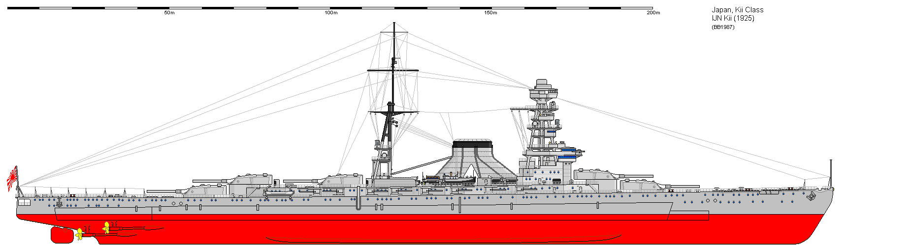 Ezen felül a japán hajógyárakban különböző készültéségi fokban levő két csatahajót és 6 csatacirkálót/gyors csatahajót ítéltek halálra. Ezen csatahajók a TOSA és KAGA, a csatacirkálók az AMAGI, AKAGI, TAKAO és ATAGO és ezek gyorscsatahajó változatai az OWARI és a KII. Két további OWARI osztályú egységet (feltételezett neveik KINKO és SHUNKA) és a 13-as tervszámra hallgató, szintén forradalmian újszerű kialakítású gyorscsatahajó osztályt el sem tudták kezdeni.