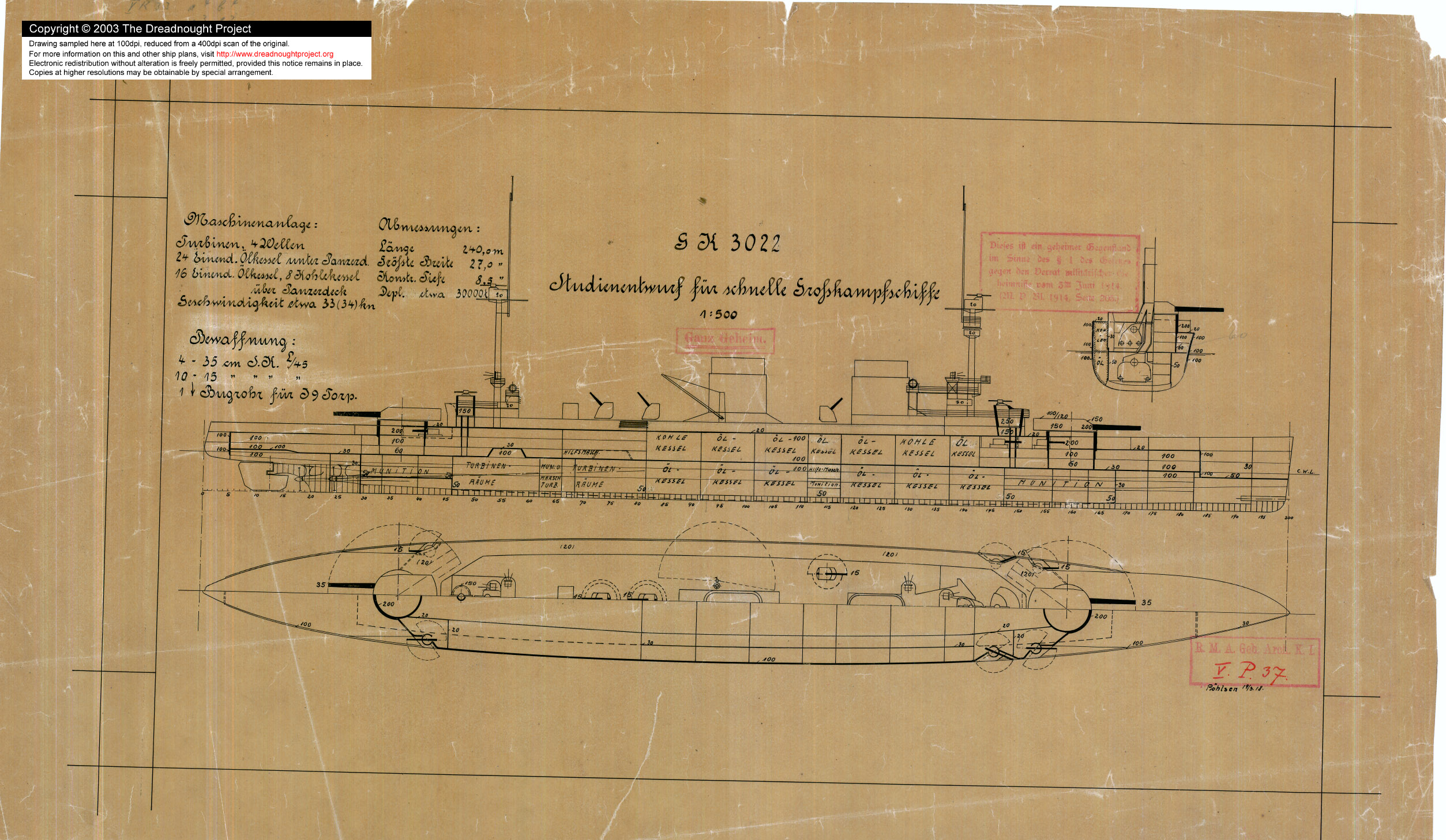[7] This ships can be contrasted to the battlescouts introduced in Part 1. and to the smaller German unified type forerunner designs, the GK-3021 and 22. Although all three navies’ designs showed similarities externally and in specifications they were all conceived for different tasks and purposes, so as the saying goes all similarities are coincidental.