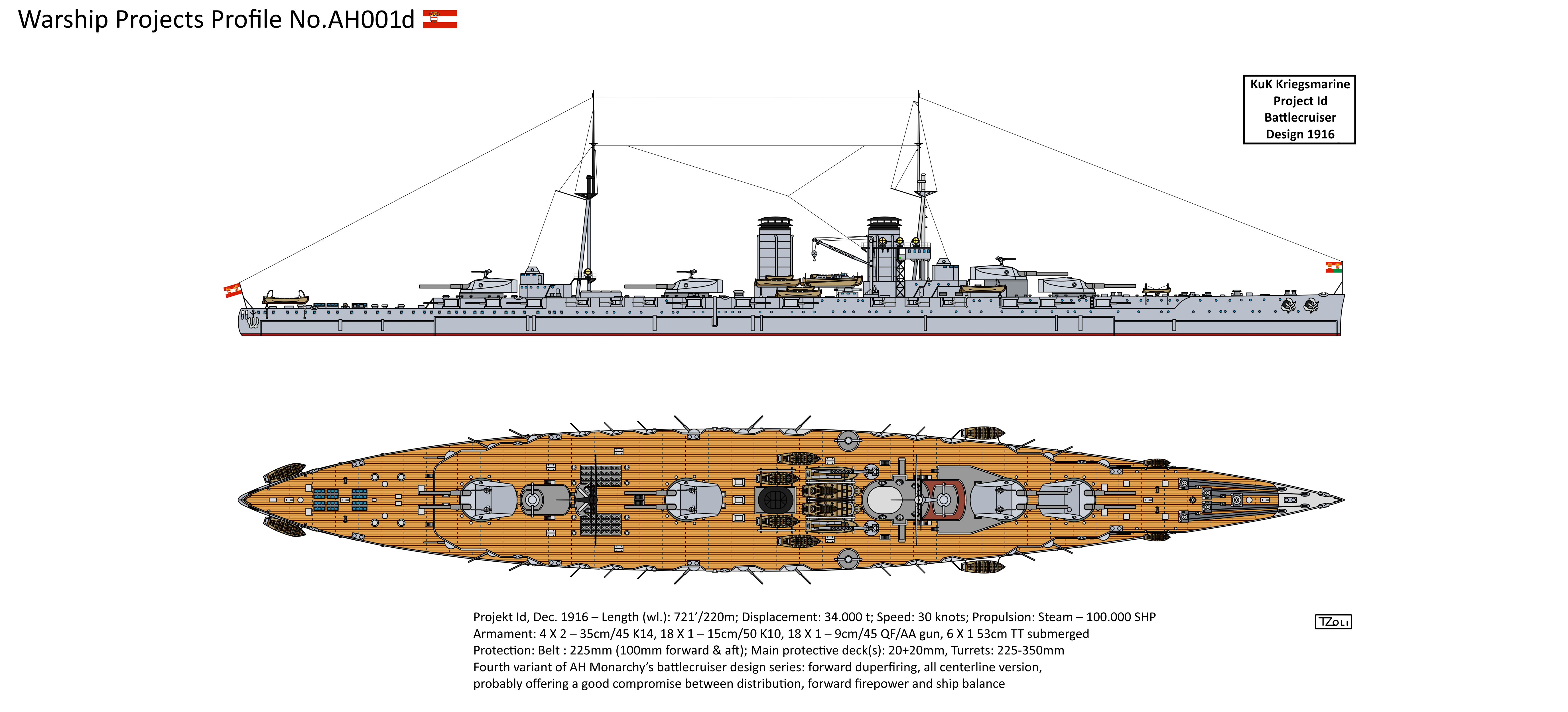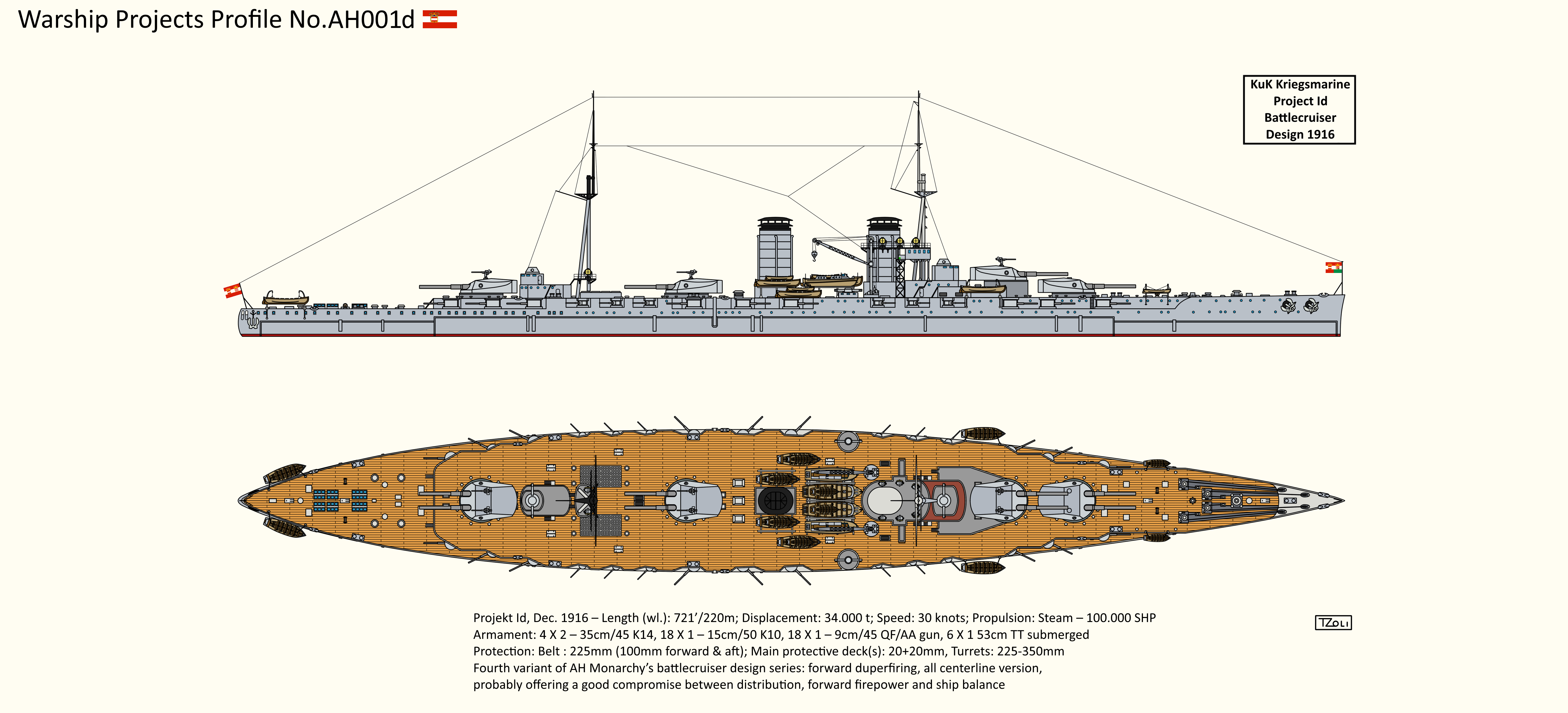 AH, Battlecruiser, WP Profile Warship Projects Profile No.AH001d Posted by csatahajos on September 23, 2017September 27, 2017 Fourth from a series of 6 battlecruiser designs done mid-war in 1916 to evaluate a possible fast wing addition to the dreadnought fleet. Share this: Click to share on X (Opens in new window) X Click to share on Facebook (Opens in new window) Facebook Like Loading... Related