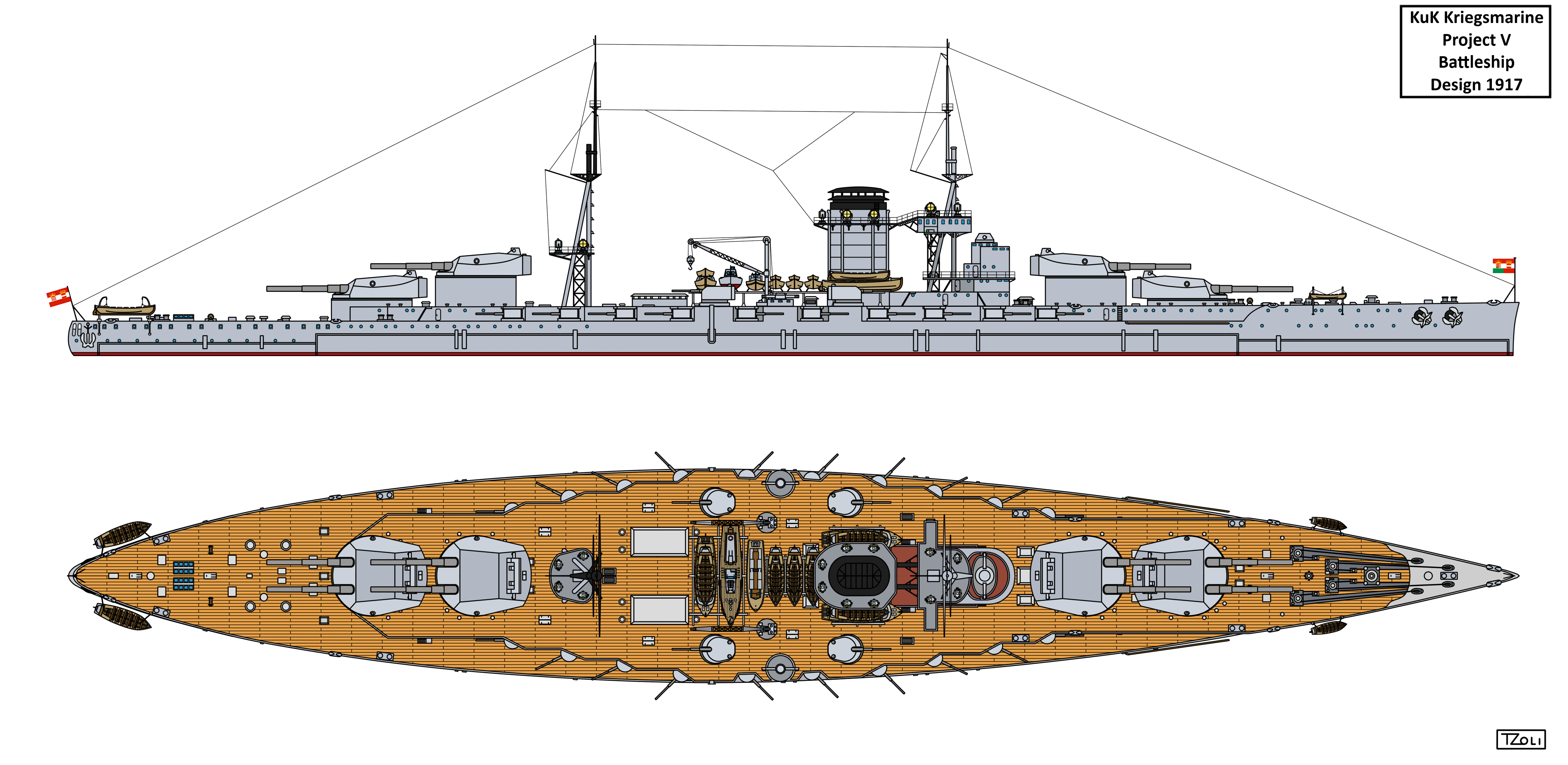 In mid-1917 the MTK (Marinetechnische Komitee – Naval Technical Committee), Pola prepared a battleship design the same time they proposed battlecruiser Project II.