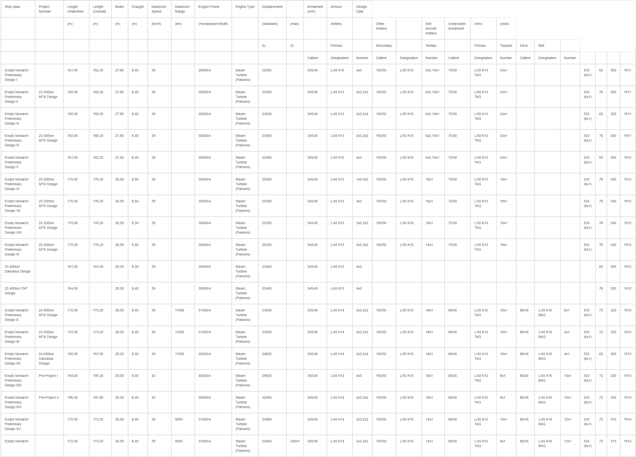 Apparently the Austro-Hungarian naval architects felt that such stripped down designs would not be well balanced and presented two enlarged alternative designs with heavier weaponry and speed increased to 23knots in January 1914, showing that more displacement was required for a more balanced battleships.