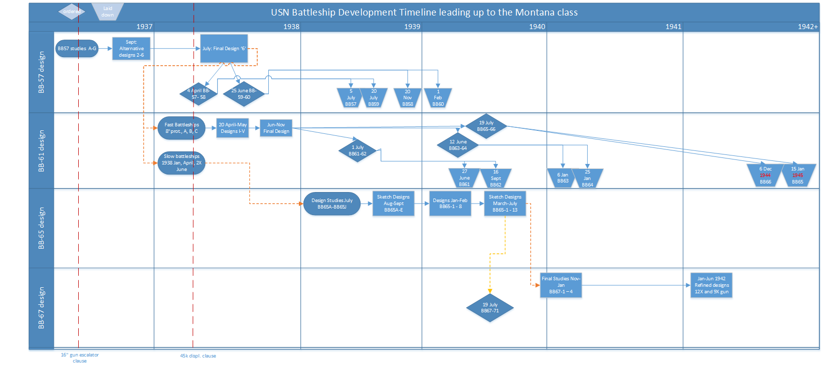 Our story gets really to the point from here as the ultimate heavy battleship concept that morphed into the Montana class started it’s development cycle right here, at the same time with the fast battleship.