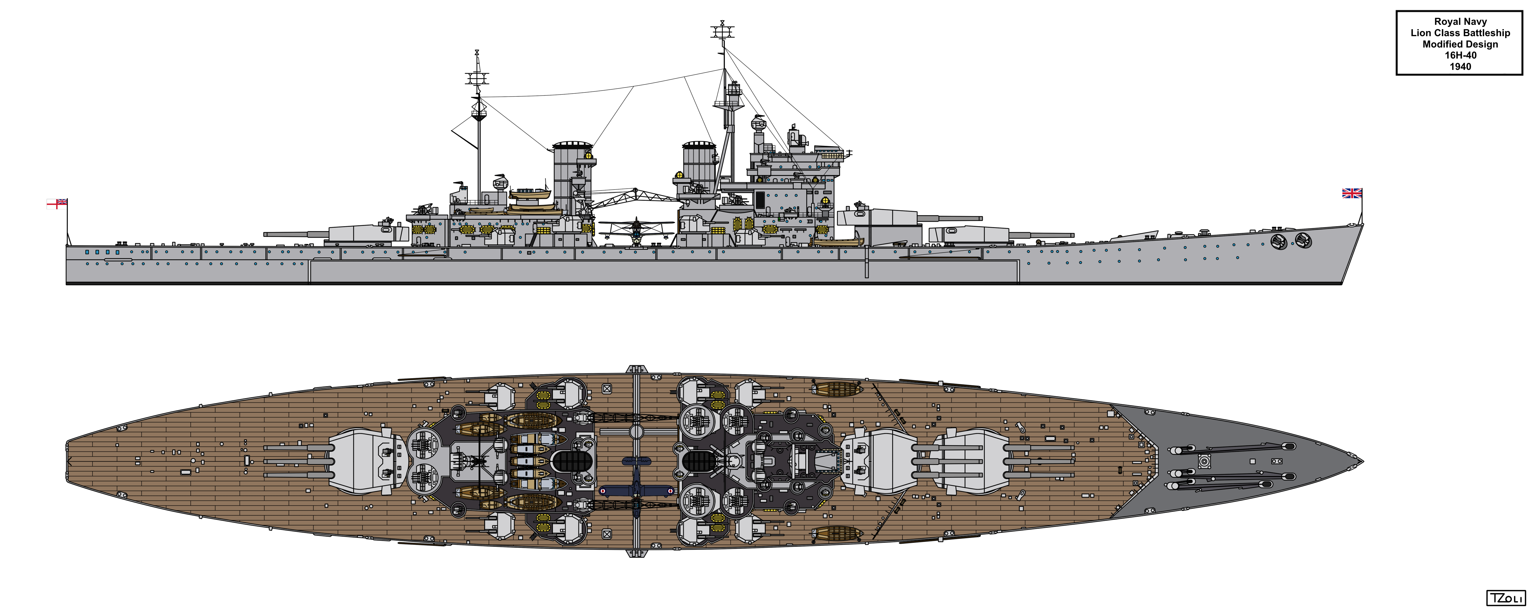 In late 1941 early 1942 another set of changes were made to the Lion class battleships (construction was suspended). These incorporated the latest war and operational experiences with the King George V class battleships and also some known weaknesses of the current design.