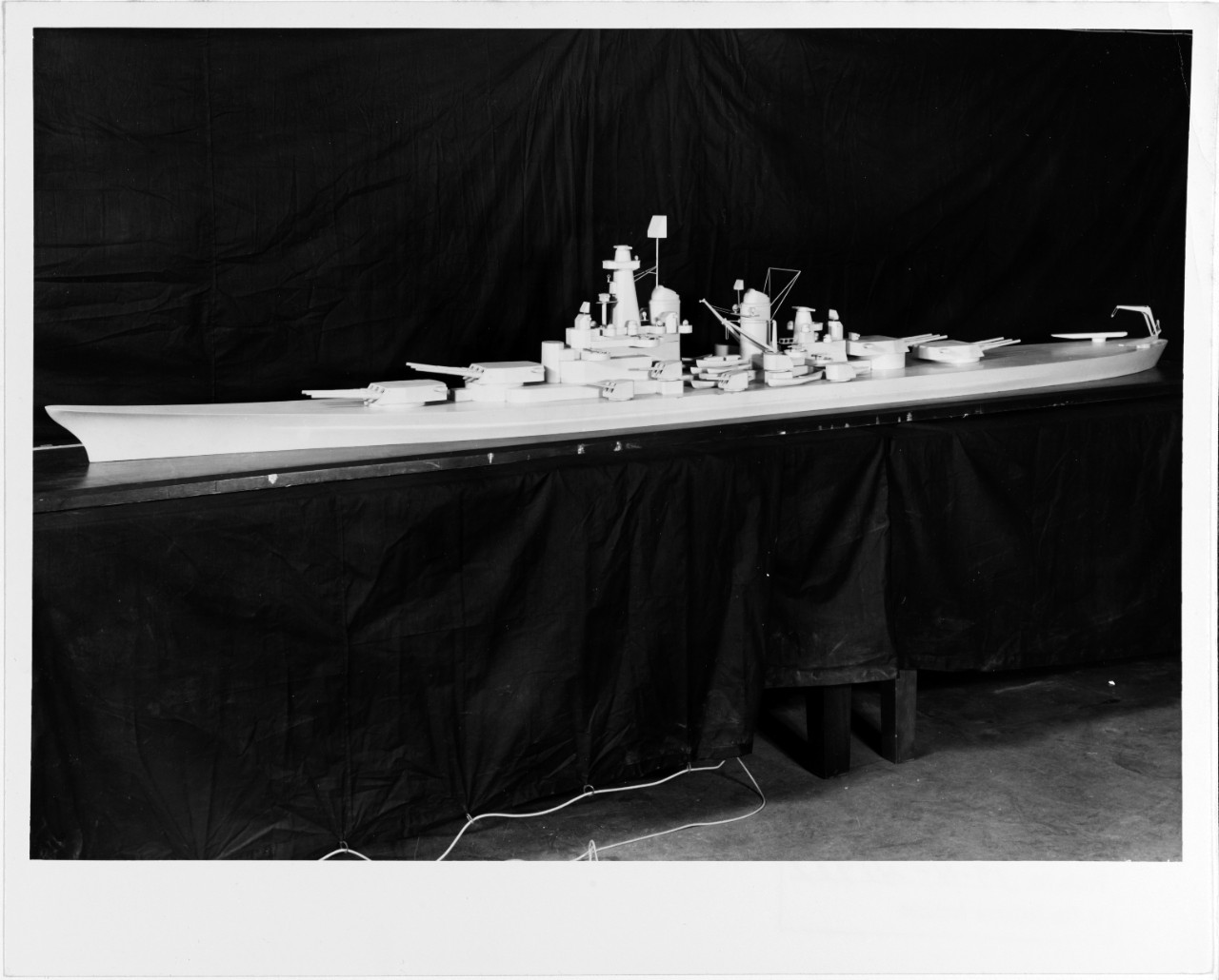 BB67-4 was the last and final preliminary design, essentially the ship as selected for production. The only major change was the increase of armored freeboard from 8 to 9 feet. The superstructure underwent some rearrangement as well to facilitate the best possible firing arcs for the 40mm battery. The number of mounts increased to 8 quad mounts, two high up on each corner of the superstructure. Somewhat later an additional pair was added at the stern, on both sides of the aircraft handling crane.