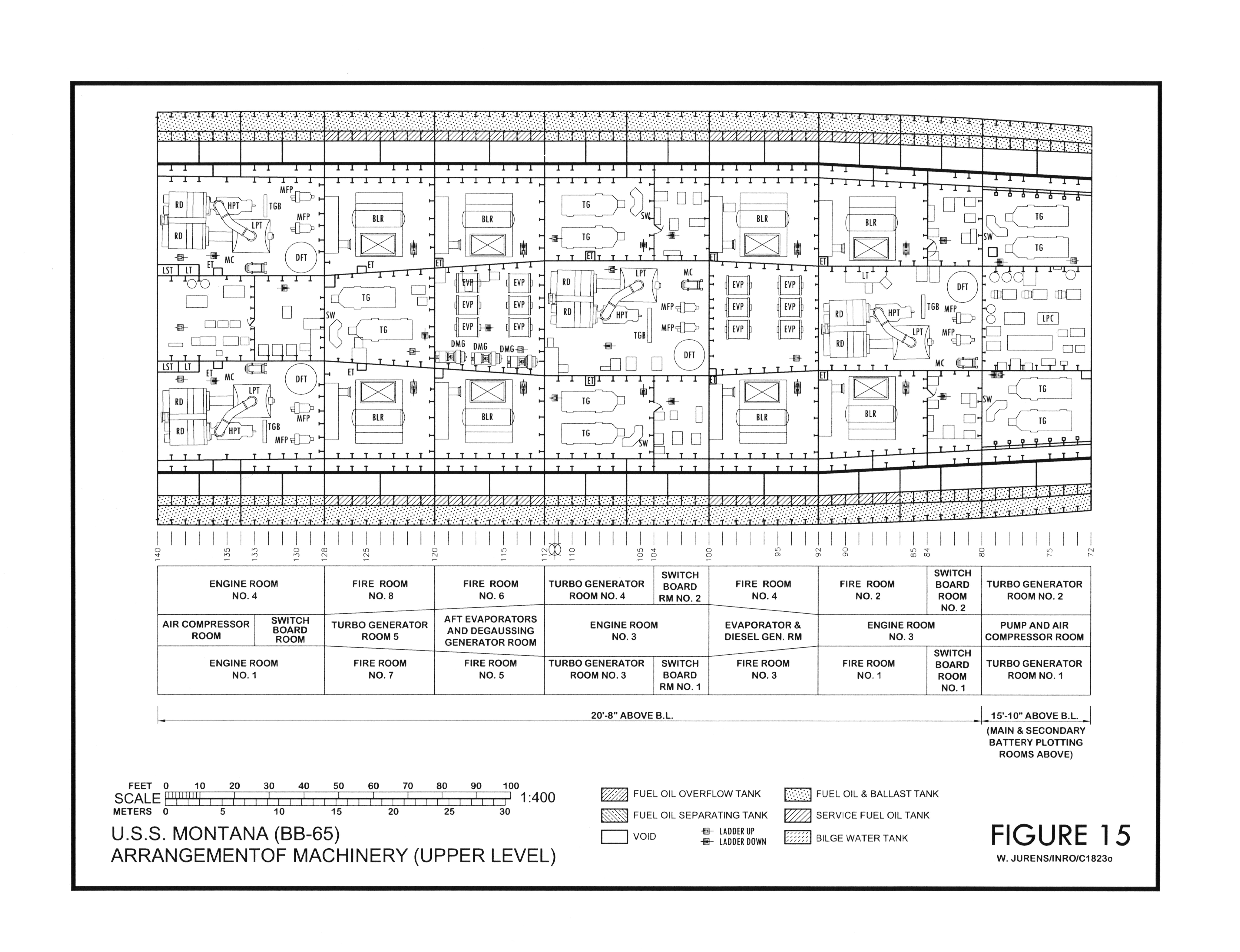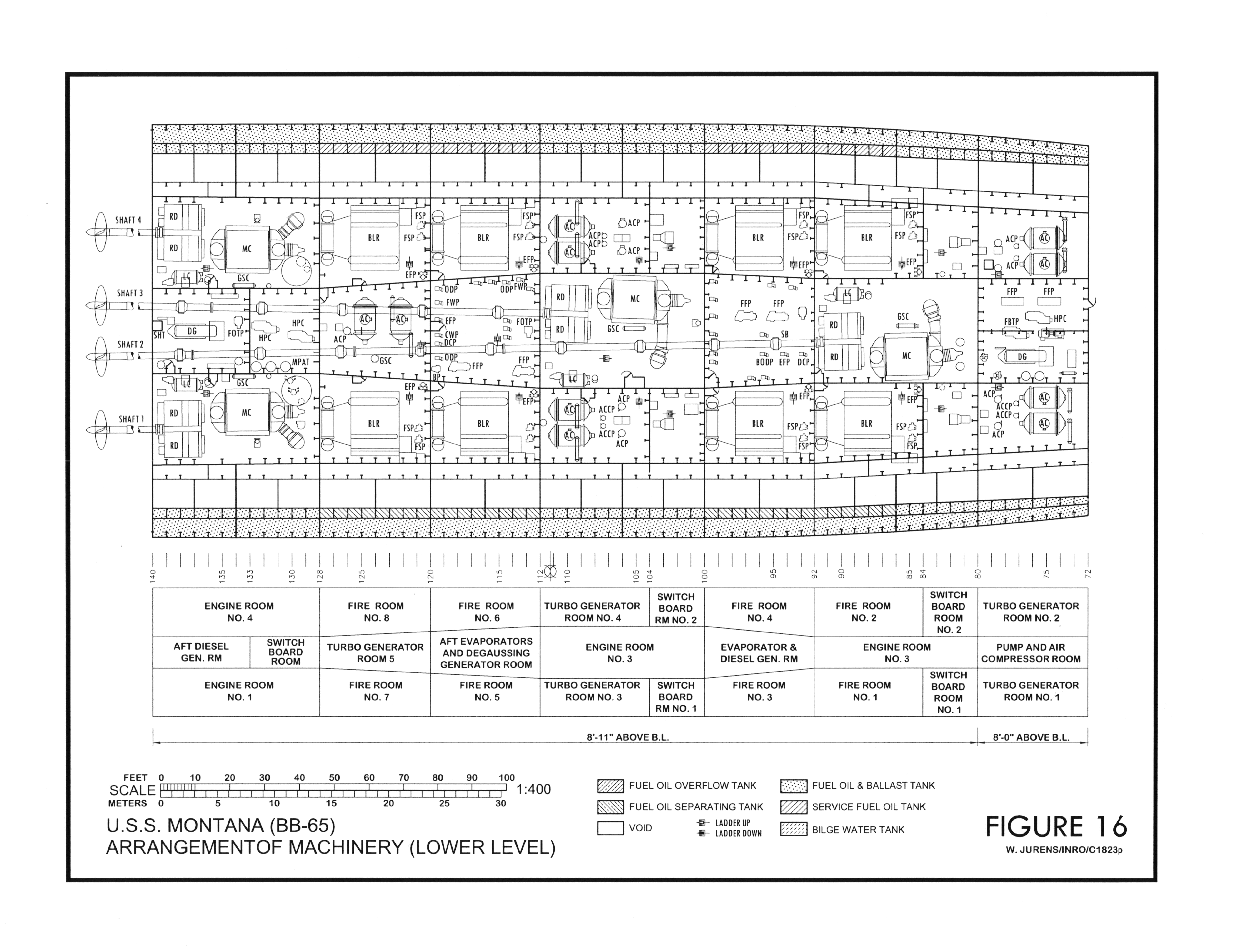 Previously longitudinal bulkheads in machinery spaces were discarded as it risked assymetrical flooding that could lead to capsizing of the ship. However here the designers had a much wider beam to play with and a division into three parts instead of only two mitigated this risk to an acceptable level, especially if skirted by a much deeper and stronger TDS. However it is indicative of why War Plans and some other members of the design team were so concerned with draft in damaged conditions: with their huge beams these ships could easily dip into the 40’+ draft zone.
