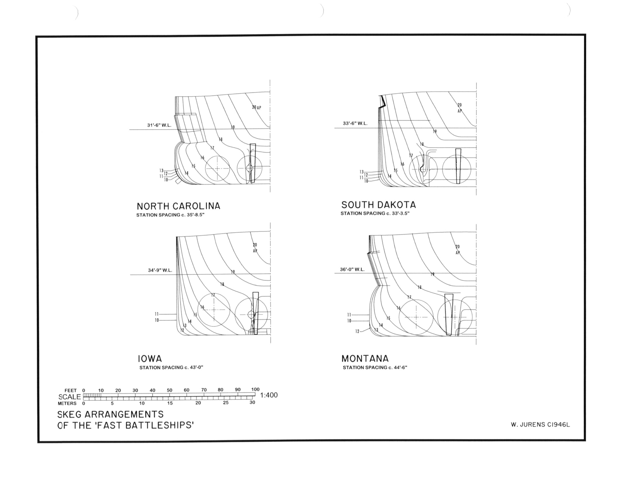 In 1944 BuShips during a cruiser design reviewed the Iowas characteristics. To remedy some errors they suggested to reduce lenght by 40 feet and add a beam or blister of 6′ on both sides covering the ship’s length between the main armored transverse bulkheads. This would have undoubtledly improve torpedo protection but definitely reduce maximum speed to 30-31 knots. They also suggested features taken from the Montanas, like much more subdivided machinery and the elminiation of the aft lower armored belt and it’s armored deck in favor of armored tubes containing the steering leads.
