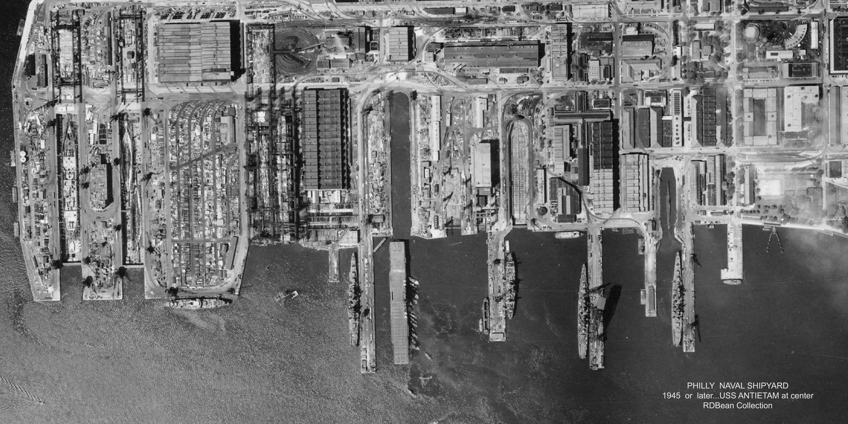 Philedalephia Navy Yard was the other major player in the fast battleship construction program and in some respect much better suited to take on the huge new hulls. While the New York Navy Yard in Brooklyn was relatievely boxed in by the surrounding metropolis and had cramped waterway run-ins to it’s drydock sills there was no such issue at Philadelphia. The wide Delaware river offered plenty of space to handle even the largest hulls. They also had two major slipways, suitable for battleship construction, however just as with NYNY, they were occupied by the hulls of USS New Jersey BB-62 and USS Wisconsin BB-64 until Dec. 1942 and Dec. 1943 respectively, meaning no new keels could be laid until then. What’s more Philadelphia had USS Illinois BB-65 assigned as well and she had to be fitted in paralel with the Montanas, making it building 3 of the world’s largest battleships almost in paralel, not an easy task (and probably a record if done).